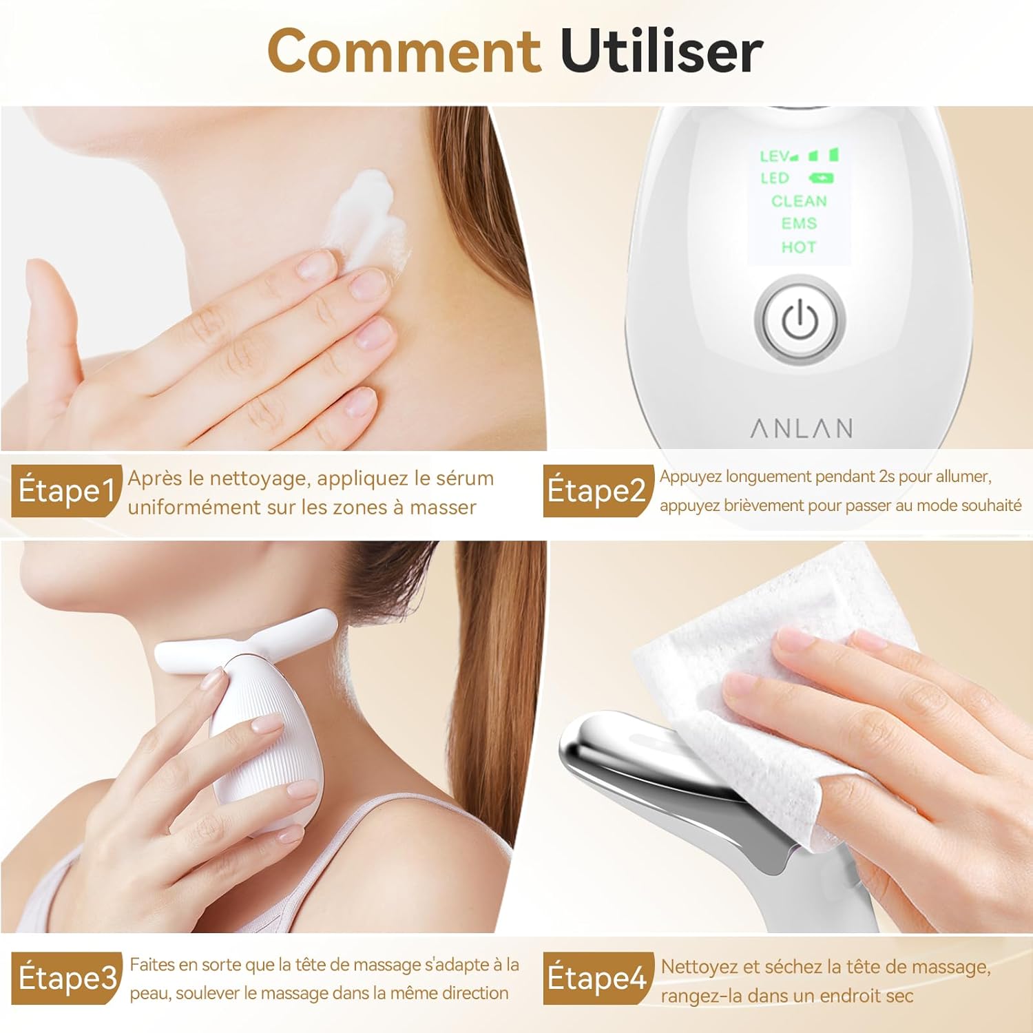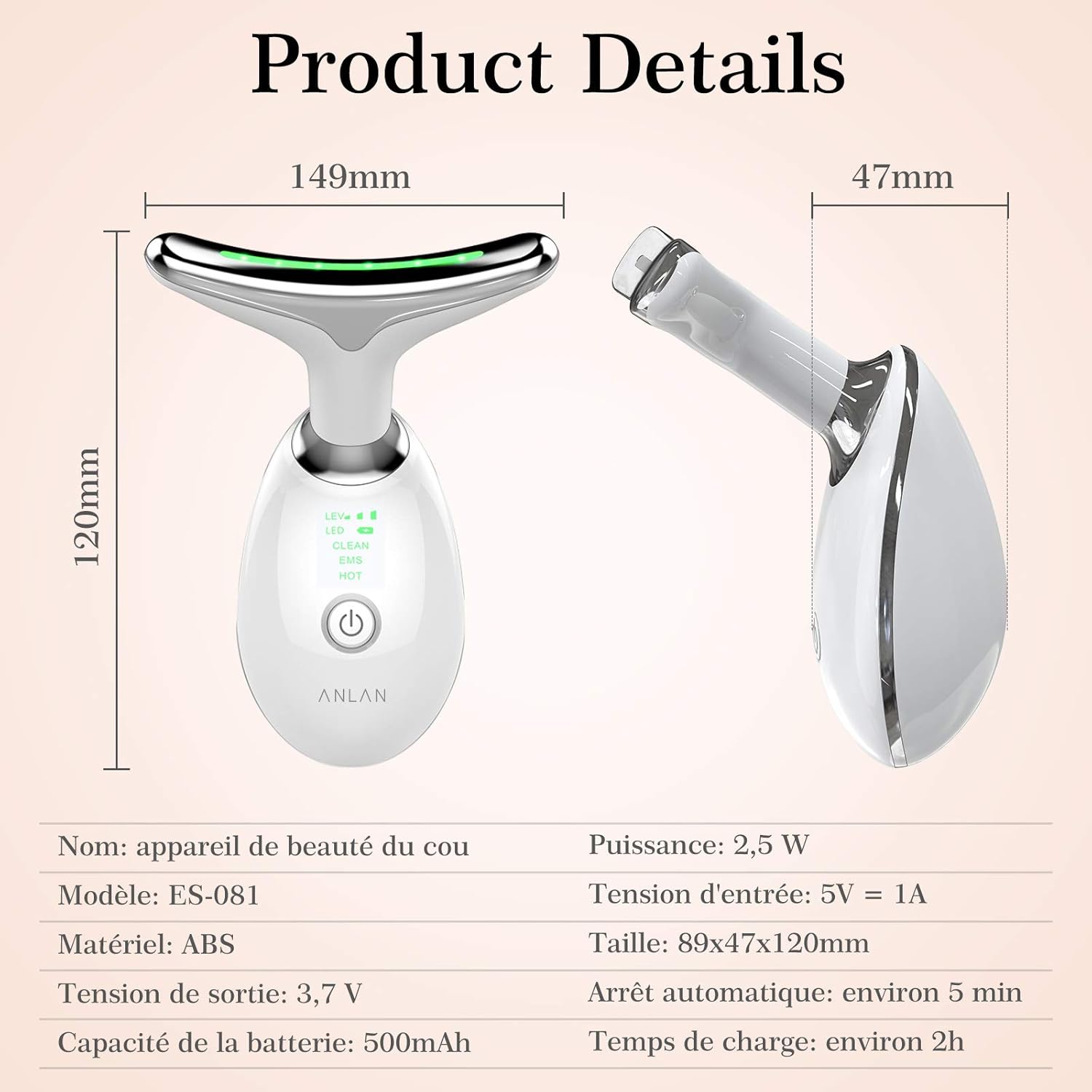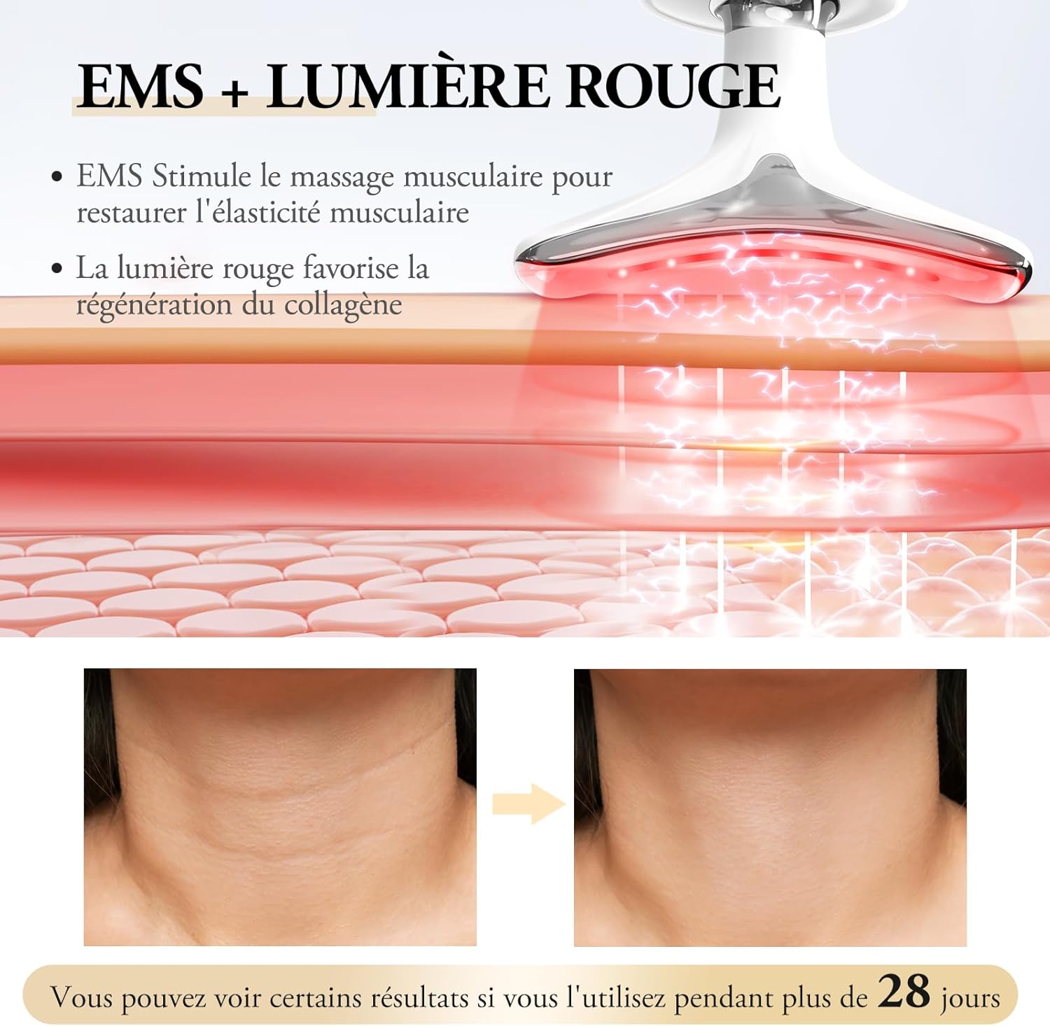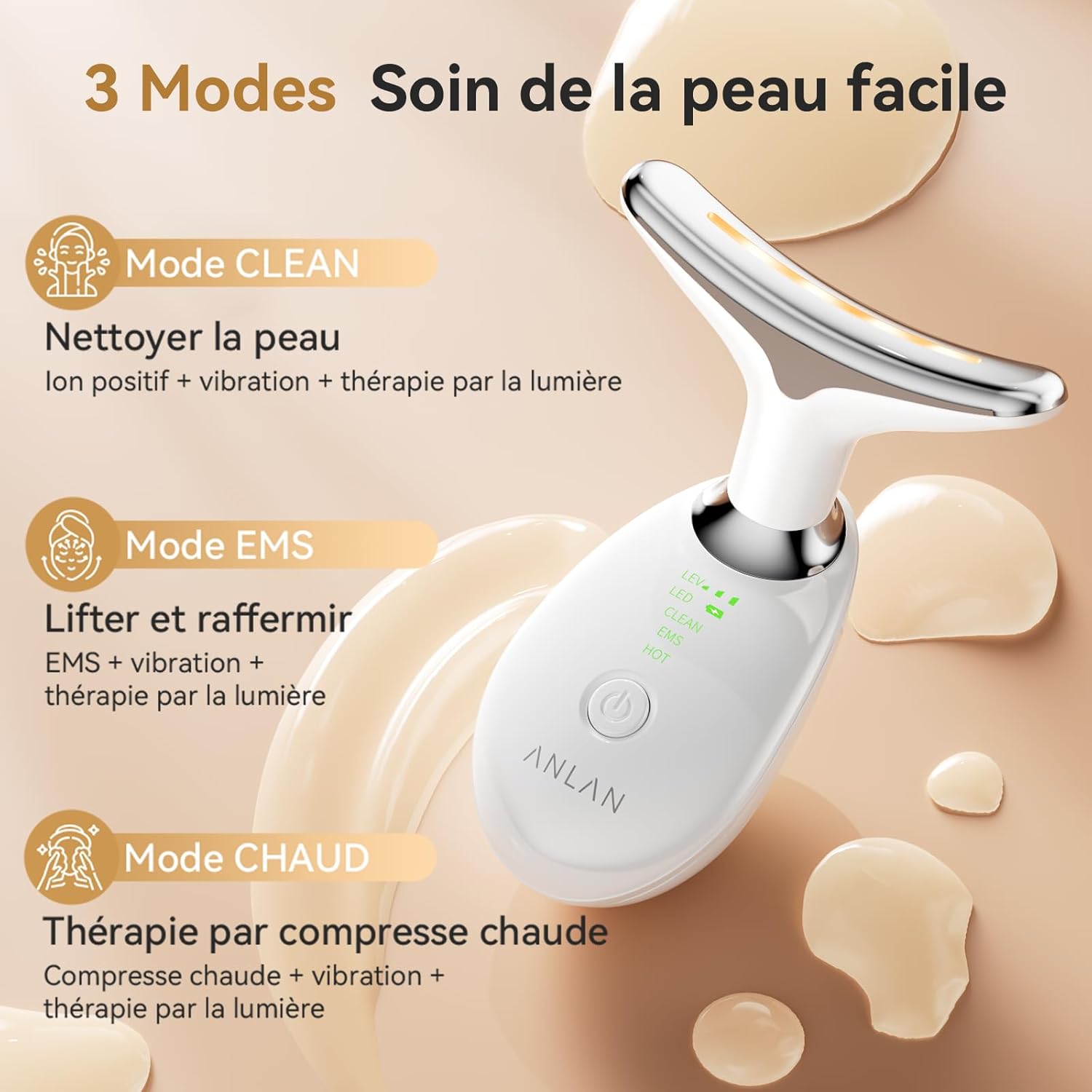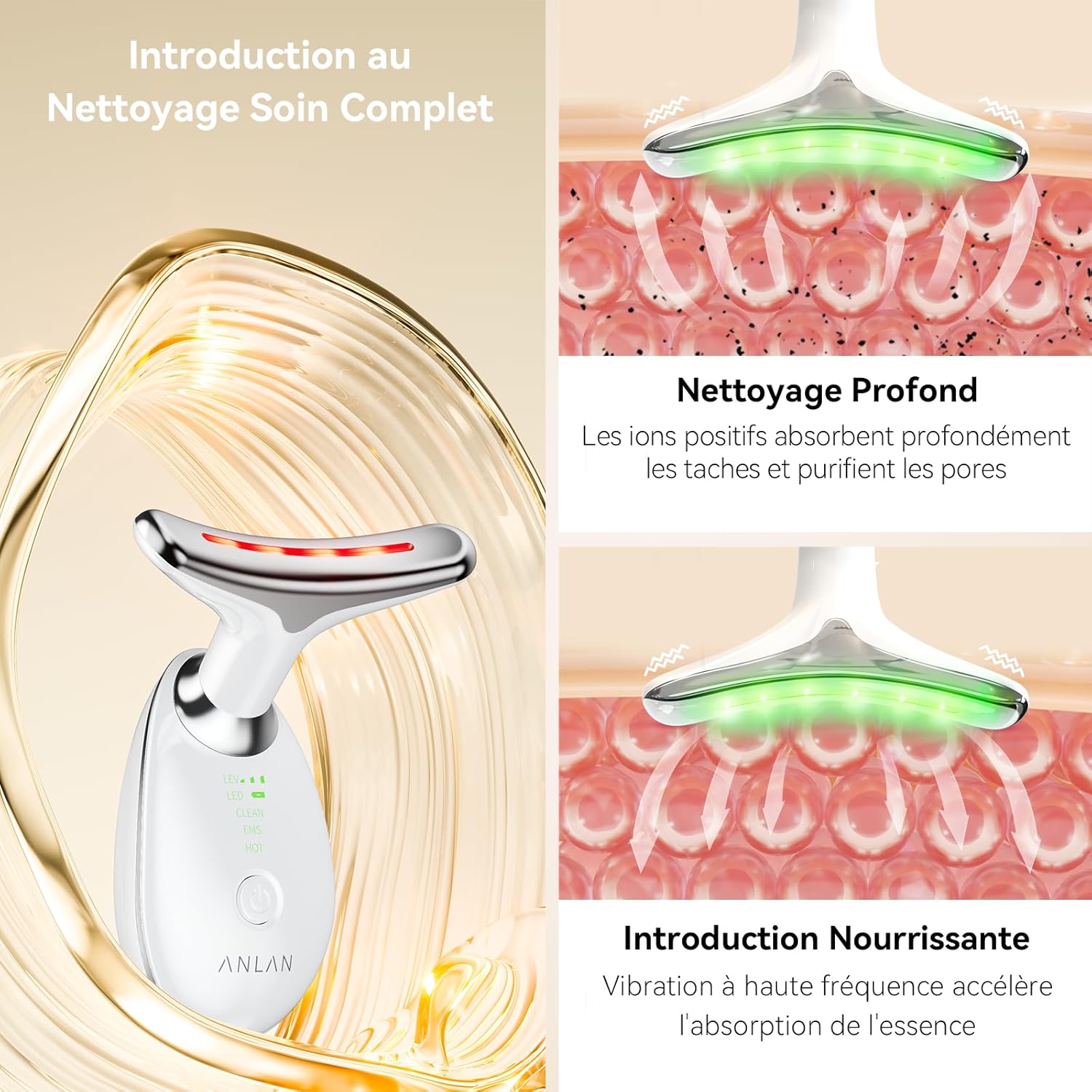 - Soin raffermissant et liftant : Grâce à sa technologie avancée, l’appareil stimule la microcirculation et favorise la production de collagène, aidant à raffermir la peau et à réduire le relâchement cutané du visage et du cou.